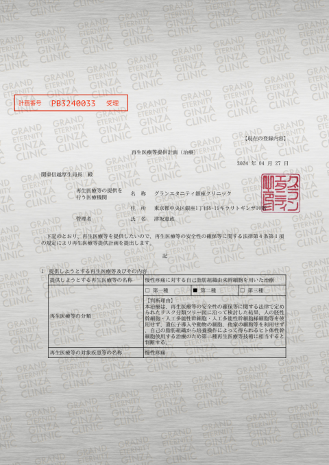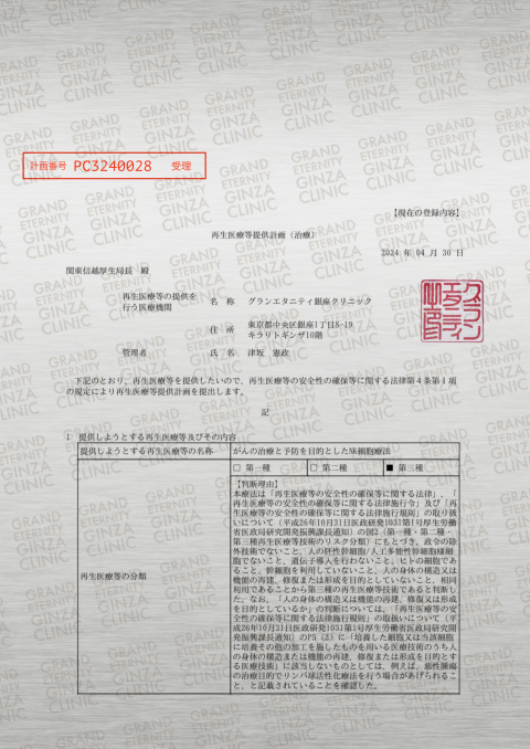第二種・第三種 再生医療等提供計画(治療)受理