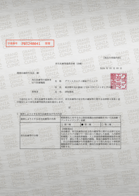 グランエタニティ銀座クリニック 再生医療 がん遺伝子治療 抗加齢
