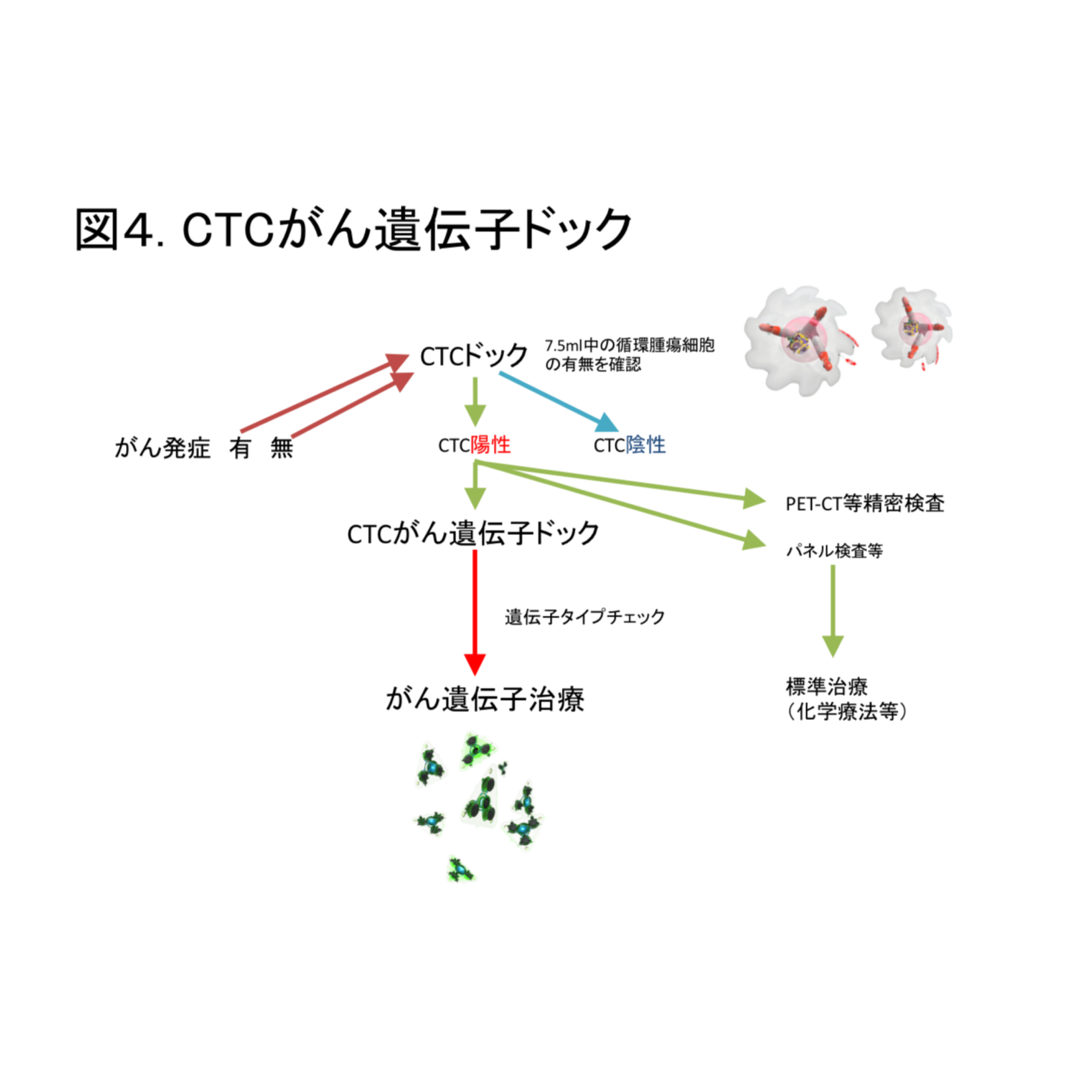 CTC癌基因检测流程如下(图4)。无论是否已被诊断为癌症(阳性或阴性),首先接受CTC检测,如果在外周血7.5毫升中检测到任何阳性CTC,则将继续接受CTC癌基因检测。然后,根据CTC癌基因检测结果,选择最适合的基因治疗蛋白组合进行癌基因治疗。